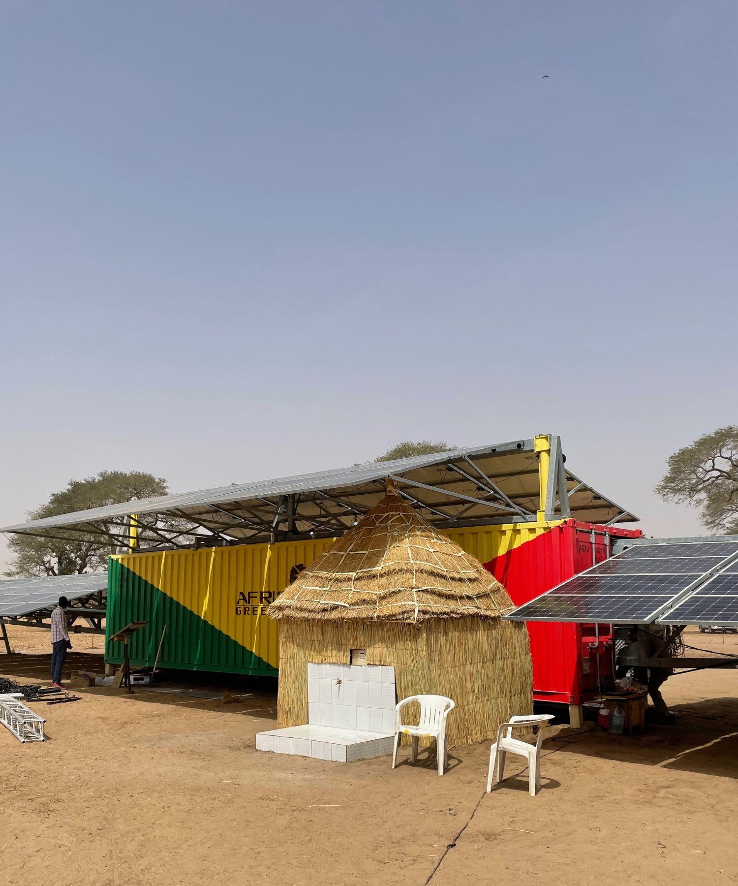 Für die Dorfbewohner:innen bleiben als einzige Lösung häufig nur die sogenannte Off-Grid Produkte. Off-Grid bedeutet lösgelöst vom Hauptnetz, also Insellösungen. Diese können klein (bspw. ein einzelnes Solarpanel) oder groß, wie der Solartainer von Africa GreenTec, sein.